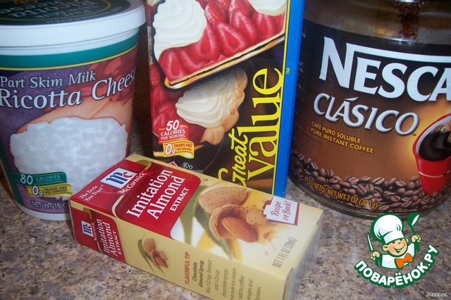 ратопить желатин,добавить 1ст.л кофе, перемешать и 1ч.л миндального экстрата,перемешать.