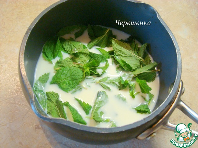 Взбить сливки, добавить измельченную мяту и соединить с яично-молочной смесью.