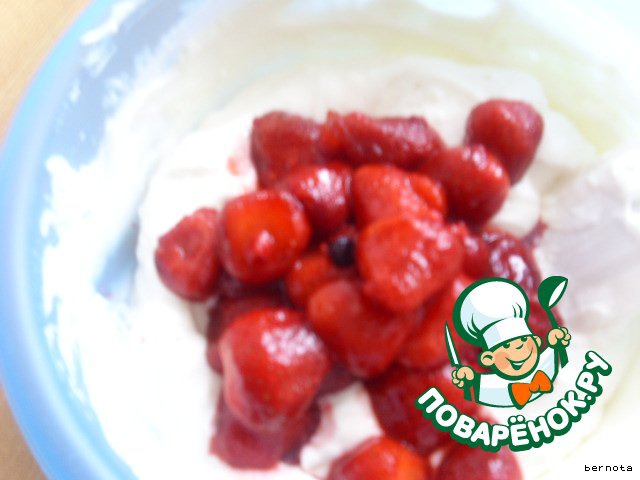 добавляем клубнику (можно её порезать и на кусочки но я положила целую)