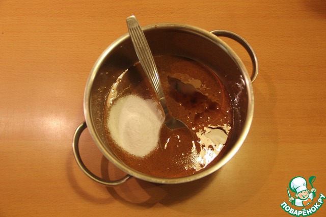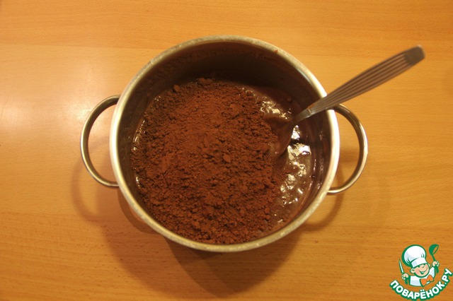 Потом добавляем какао и оставшуюся протеиновую смесь и осторожно перемешиваем ложкой до однородного состояния.