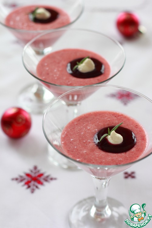 Для этого десерта можно взять любую ягоду - черную смородину, чернику, красную смородину... Я использовала мороженную клубнику. Замороженную ягоду нужно предварительно разморозить при комнатной температуре, а затем пюрировать.
