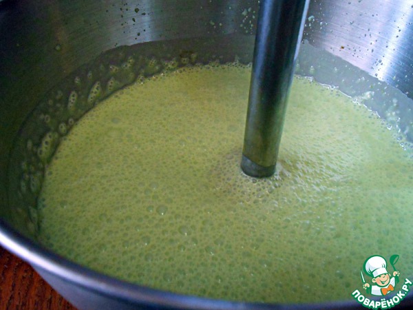 Влить в желтки горячие сливки очень тонкой струйкой, одновременно интенсивно сбивая смесь (я использовала блендер).