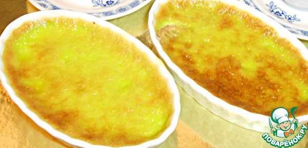 | Первая проба домашнего крем-брюле ( http://www.povarenok .ru/recipes/show/775 92/ ) оказалась столь удачной, что этот десерт быстро стал фаворитом у домочадцев. Вот теперь стараюсь разнообразить рецептуру: этот эксперимент тоже очень удачный: получилось вкусно, красиво, необычно. |