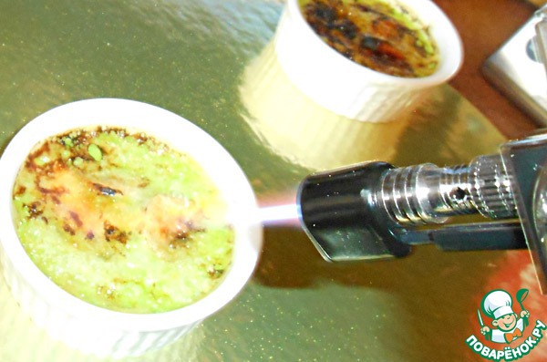 Если крем-брюле начнёт зарумяниваться раньше времени - перенести формочки на нижнюю полку.