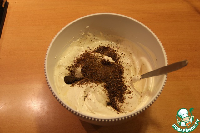 Высыпаем к белкам и осторожно перемешиваем ложкой
