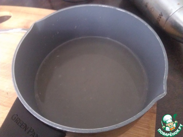Желатин заливаем водой, когда набухнет, нагреваем и даем слегка остыть.