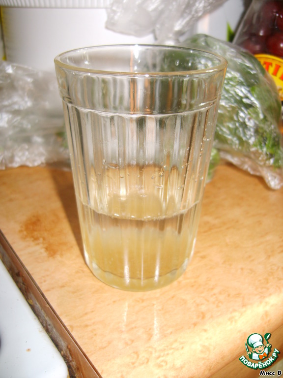 Желатин замочить в половине стакана воды на 15 минут, нагреть, процедить.