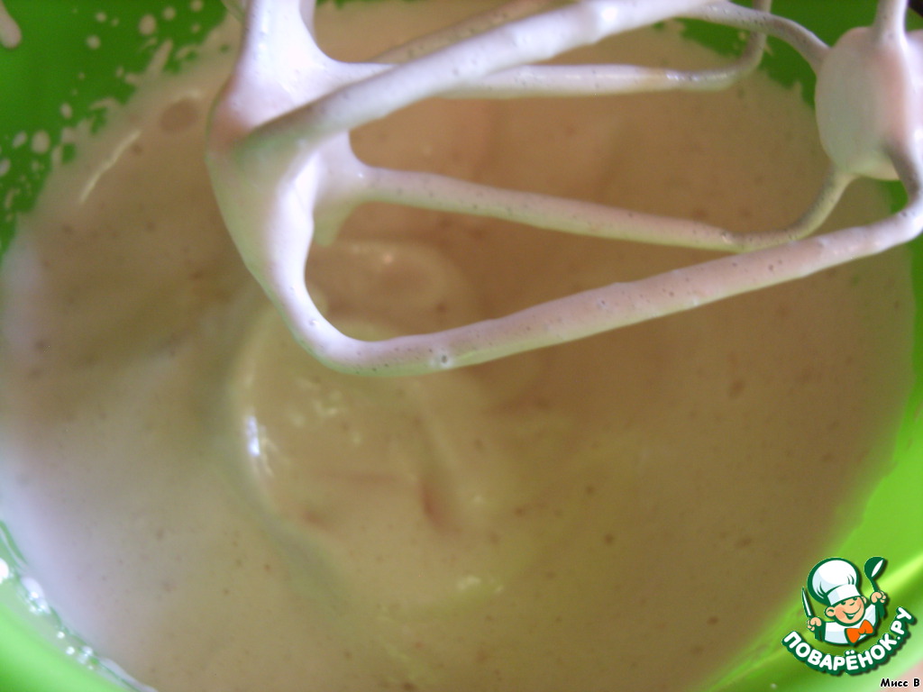 К массе отправить желатин. Взбить. Получится воздушная масса с пузырьками.
