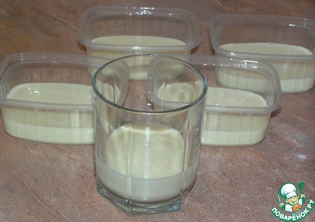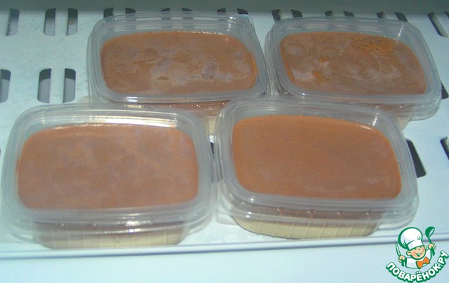 Разлить получившуюся массу формочки. Для заморозки я использую одноразовые контейнеры, а одну порцию сделаю для себя любимой, чтоб съесть сегодня же... Поставить охлаждаться в холодильник.