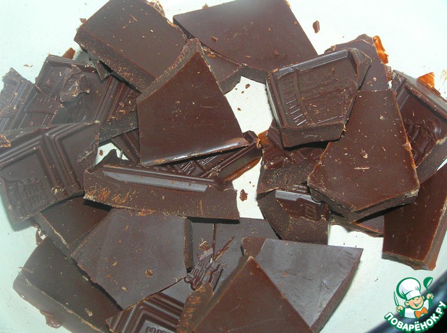 В это время желтки отделить от белков. Темный шоколад расплавить на водяной бане.