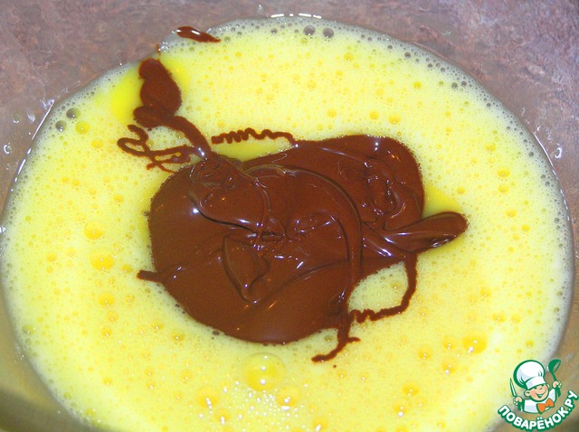 Желтки взбить венчиком. Небольшими порциями добавлять расплавленный шоколад, тщательно размешивая до однородной массы.