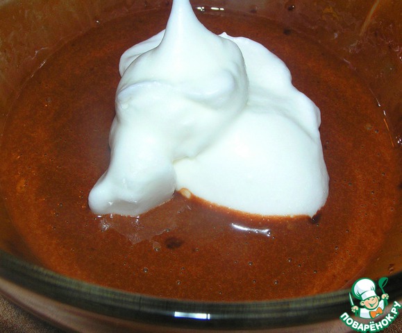 Охлажденные белки с щепоткой соли взбить в крепкую пену. И также порциями вмешать в массу.