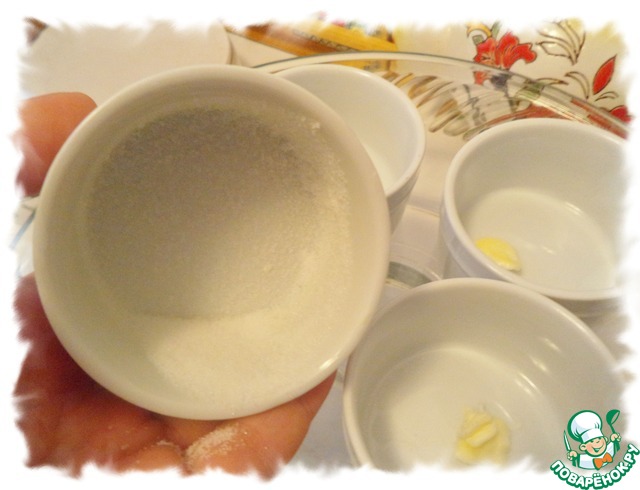 Смазать формочки маслом и обсыпать сахаром.