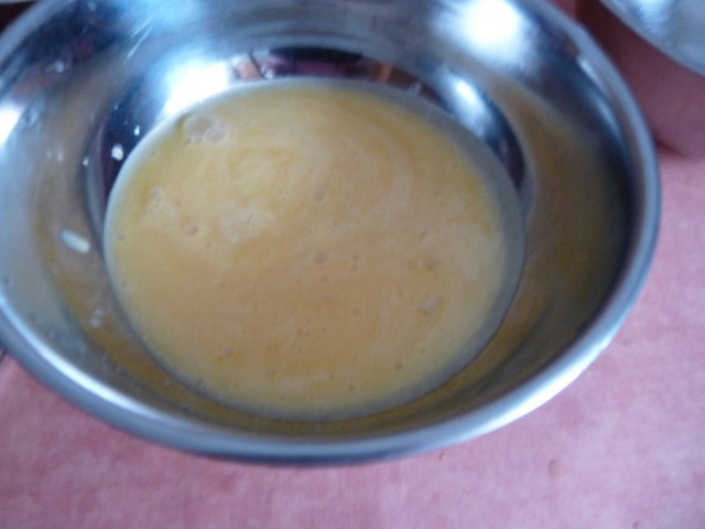 Взбиваем белки с 25 г сахара и всё осторожно соединяем.