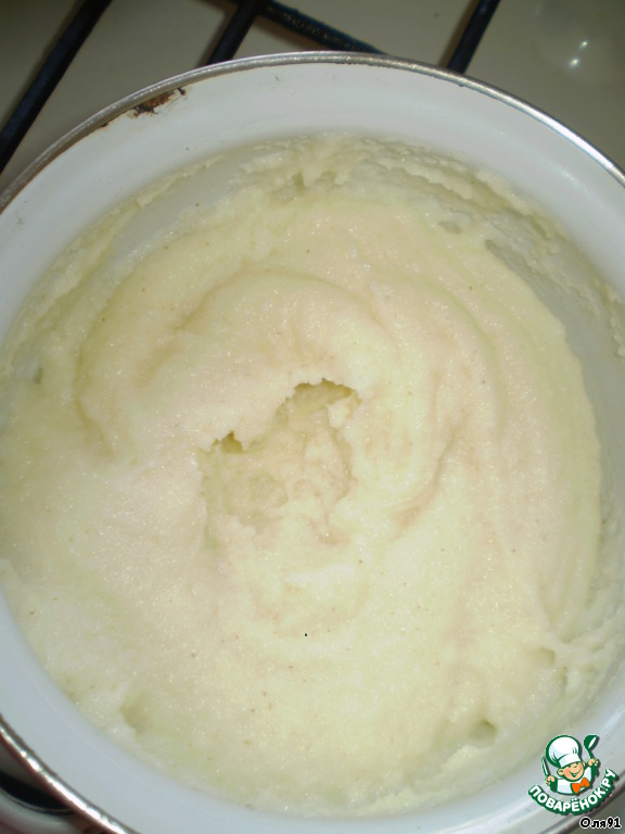 Для начала сварим густую манку на молоке, в готовую манку добавить ванильку