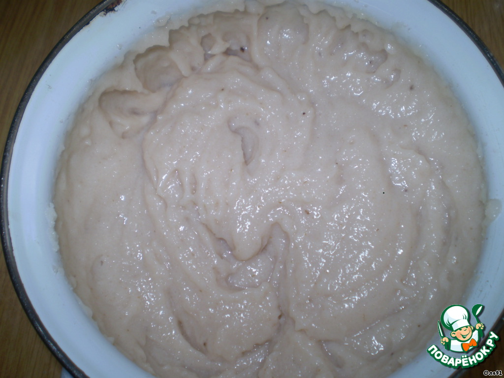 Затем измельчаем половину спелого банана блендером (нам больше не нужно, т.к. вкус будет хуже),