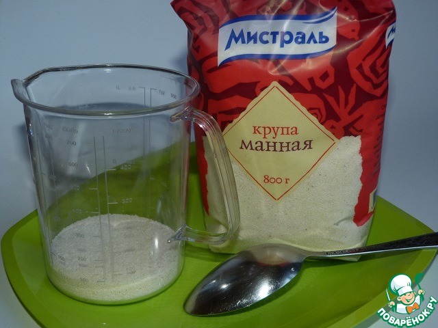 Приготовим сразу манку - 5 ст. ложек манной крупы насыпать в кружку.