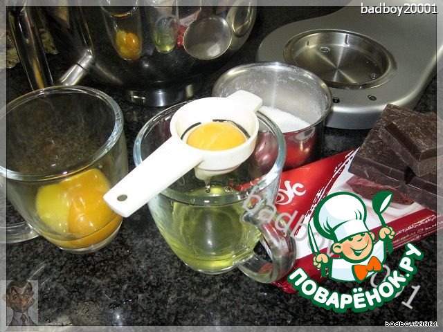 Самым первым и трудоемким процессом является отделение желтков от белков, я последнее время пользуюсь таким девайсом, очень помогает шагать с песней по жизни.