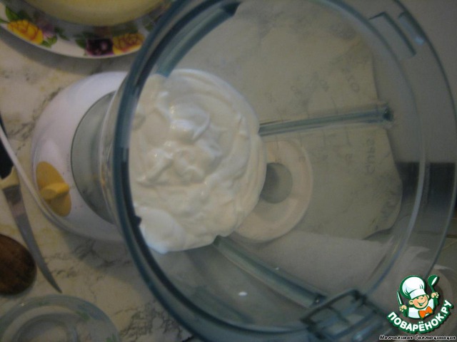 Сметану (чем жирнее сметана, тем воздушнее мусс) поместить в блендер, и взбивать 1 минуту.