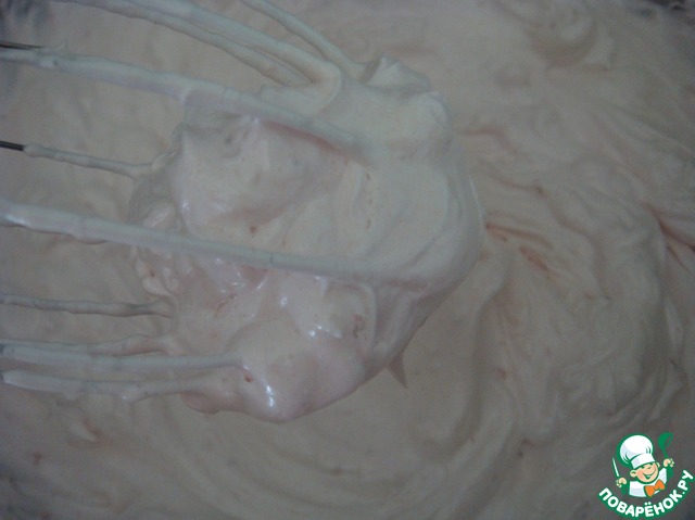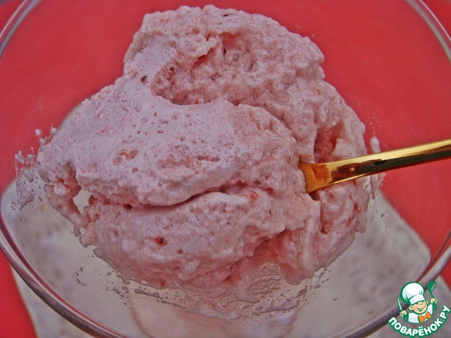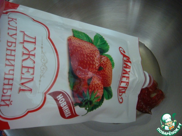 В белок добавить ванильную эссенцию или ванилин и джем. Я использовала клубничный фирмы "Махеев", он настолько вкусный и ароматный и как нельзя лучше подходит для этого блюда.