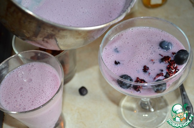 На дно бокалов (форм) выкладываем часть хлопьев с конфитюром, заливаем все это кефиром. Если есть свежие ягоды-можно кинуть несколько штук в бокал. Ставим в холодильник.