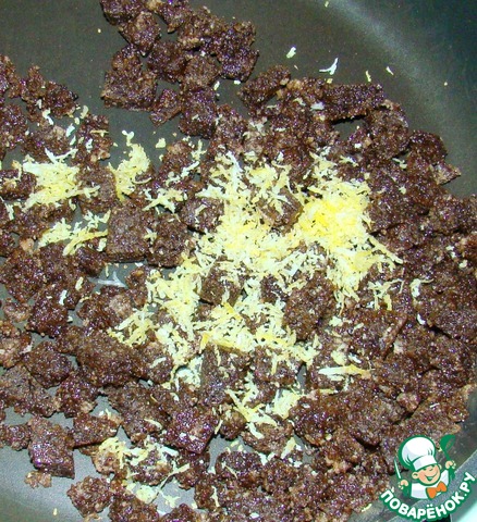Отправить в разогретую сковороду и присыпать сахаром и корицей. Хорошо перемешать. Подрумяниваем крошки на сковороде периодически помешивая до хрустящей корочки. Внутри хлеб должен остаться мягким. На это уйдет 5-7 минут.
