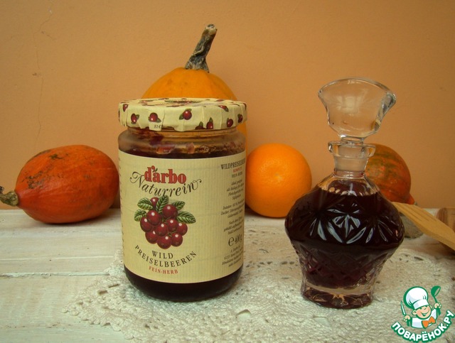 Для десерта нам понадобится брусничный соус D’arbo и какой-нибудь ягодный ликер.