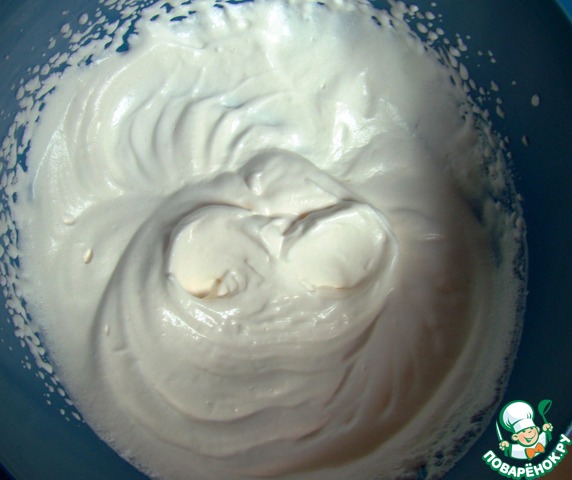 Взбиваем сливки до устойчивых пик и вводим понемногу сгущенное молоко. Наш крем-мусс готов.