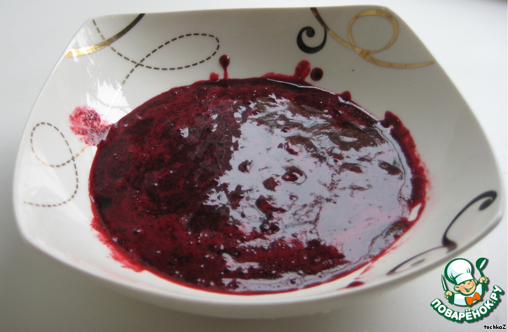 Ягоды перебрать, промыть и приготовить из них пюре (замороженные ягоды разморозить, лишнюю жидкость слить, пюрировать).