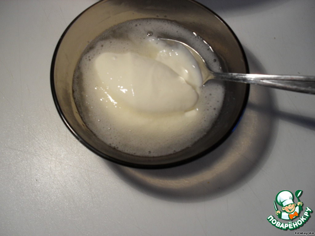 В распущенный и немного охлажденный желатин я добавила 2 ст.л. сметанной