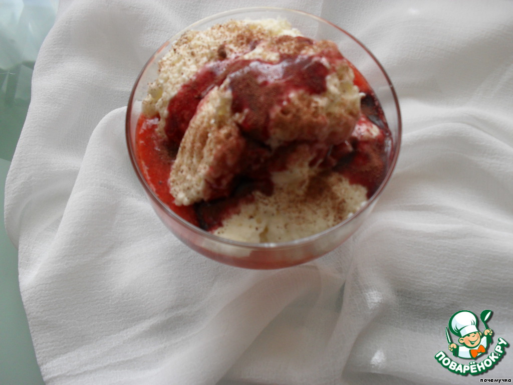 Мусс из сметаны с клубничным соусом