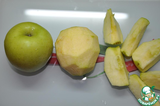 Яблоки моем, чистим, вырезаем сердцевину, режем дольками. Кладем в кипящую воду, варим 10 мин.