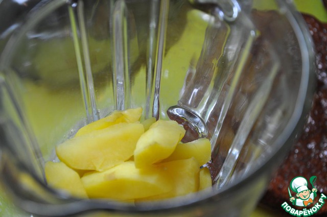 Проваренные яблоки кладем в блендер, взбиваем в пюре. Добавляем туда белковую массу. Опять взбиваем.