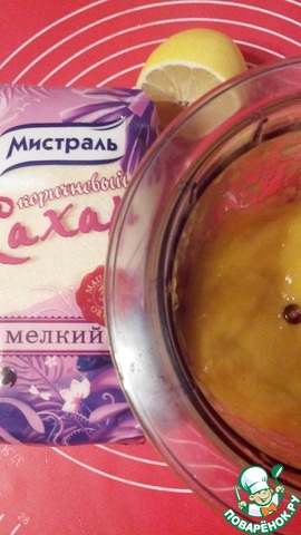 Добавляем в манговое пюре сок лимона, ликер и коричневый сахар. У меня мелкий коричневый сахар ТМ "Мистраль".