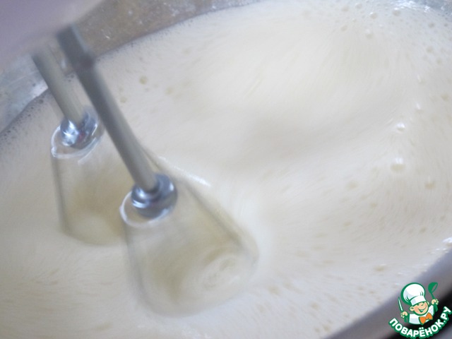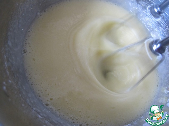 Желтки, яйцо и сахарную пудру смешать электрическим миксером.