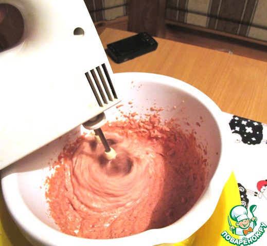 Ставим в нее миску и начинаем взбивать. Масса светлеет, и раза в три увеличивается в объёме.