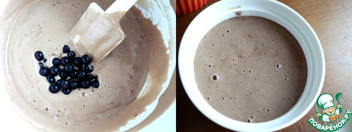 Вылить шоколадную массу в белки, аккуратно перемешать, что бы белки не теряли объёма.