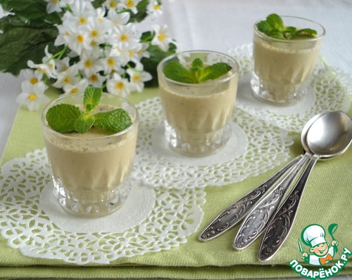 Если вы желаете, чтобы цвет мусса был более насыщеный (зеленый), тогда измельчите мяту и добавьте её в самом конце приготовления, когда мусс начнёт немного застывать.