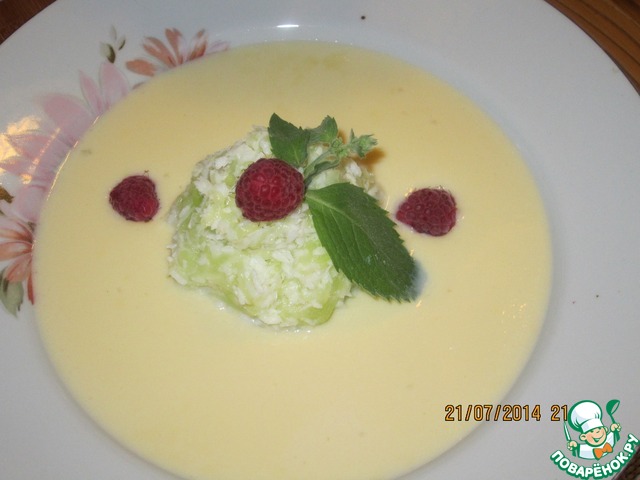 Кисель налить в тарелки, в середину положить кабачок с кокосовыми стружками