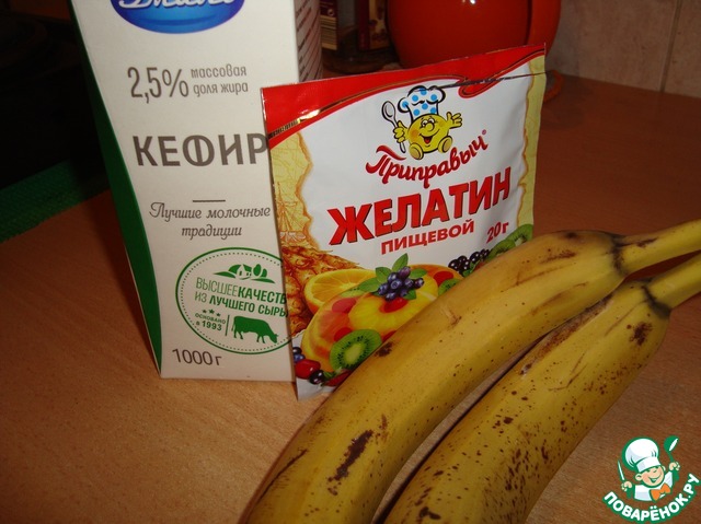 Нагреваем желатин до растворения, не даем закипеть, и через ситечко процеживаем в кефирную смесь. Еще раз пробиваем блендером.