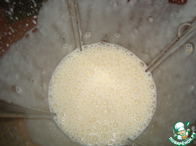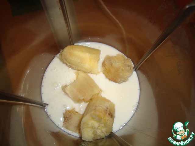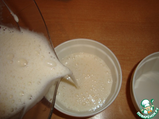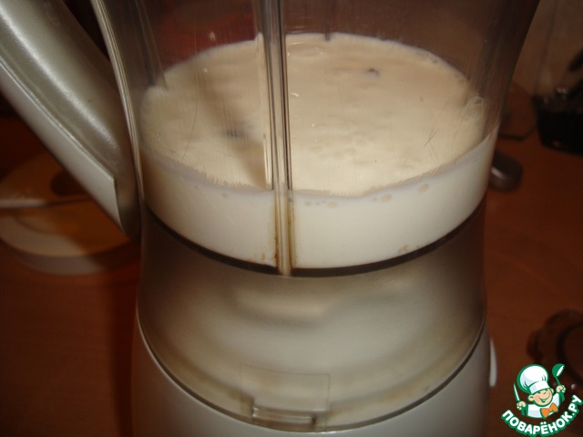 Когда желатин разбухнет, наливаем в чашку блендера кефир.
