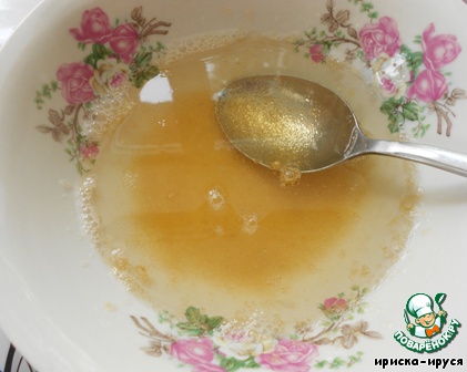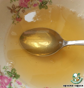 Желатин замочить в теплой кипяченой воде 0,5 стак. и оставить на 30 мин.