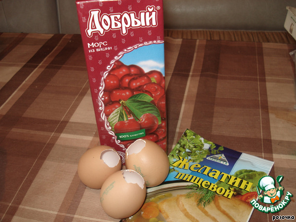 В кастрюлю насыпать 1 ст.л. желатина и залить вишневым соком.