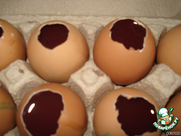 Разлейте желе по яичным скорлупкам и через 30 минут поставьте ячейку в холодильник