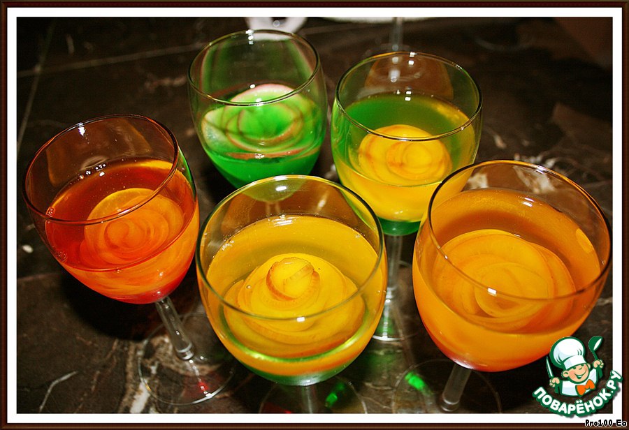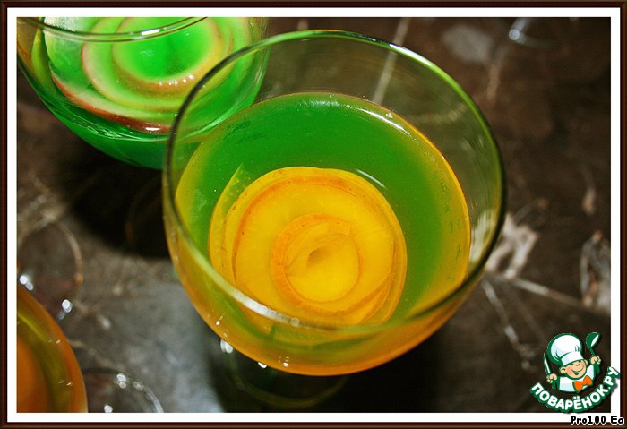 Когда желе затвердело, поставьте в стаканы фрукты, можете красиво их нарезать, это уже ваша фантазия!!!