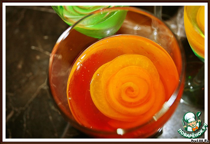 В стаканчики налейте немного желе и поставьте в холодильник, желательно, чтобы было под уклоном.