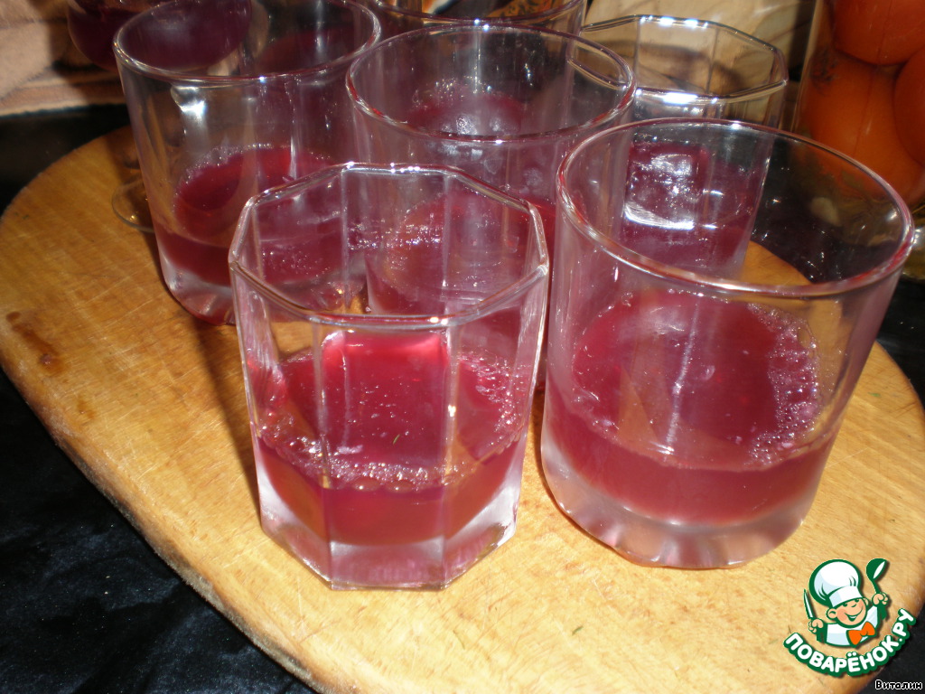Сварить из вишен компот (на 400 гр воды), развести желатин в 100 гр воды и в этот компот добавить 4 ст. ложки желатина, разлить по стаканам