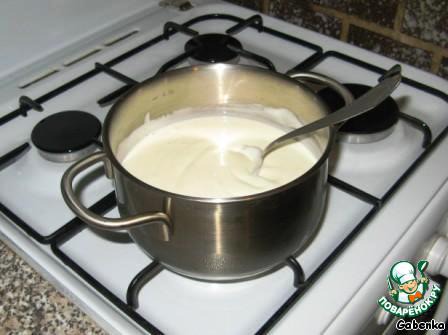 2. Сметану смешайте с сахаром и, помешивая, нагрейте до температуры 70-80 градусов.