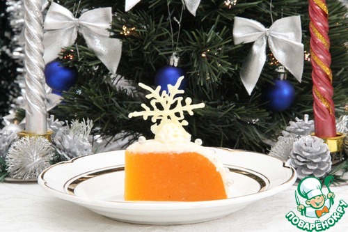 | В новогоднюю ночь, когда кушать уже не хочется, а хочется посмотреть новогодний концерт и просто попить чай с чем-нибудь легким - вот этот десерт как раз подойдет. Под толстым слоем взбитых сливок, украшенных шоколадными фигурками скрывается абрикосовое желе с пюре из кураги. |