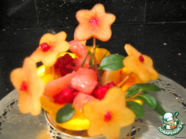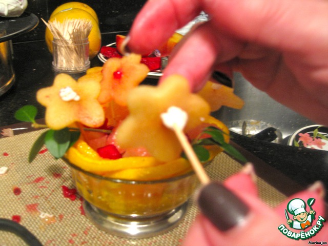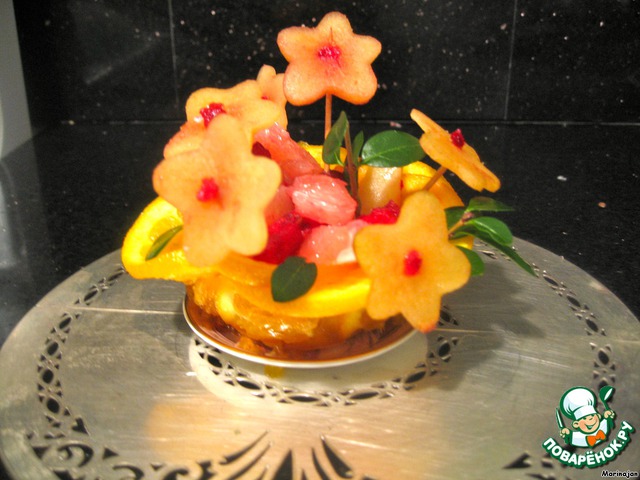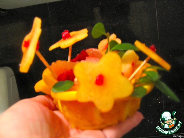 Идею корзиночки видела на SAY7. INFO -Корзиночка из апельсинов, но там она склеивает сиропом и в коментариях прочла, что быстро тает, вот и решила попробовать с желе.